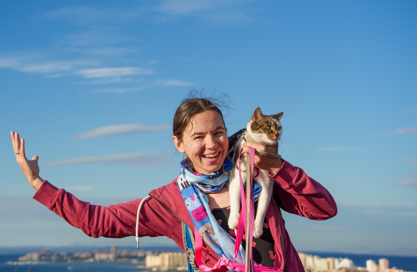 Seit zwei Jahren die beste Reisekatze, die man sich vorstellen kann. Neugierig, pflegeleicht, mutig.